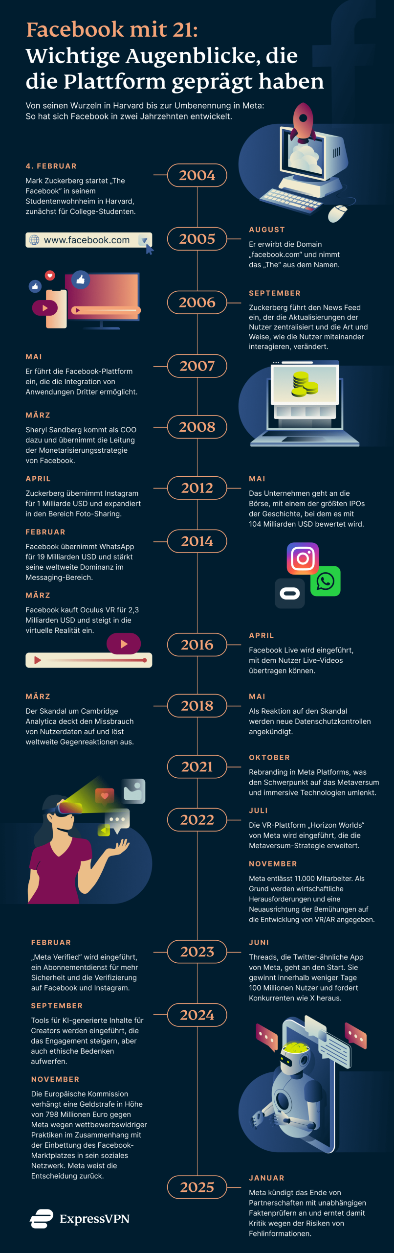 Die Geschichte von Mark Zuckerbergs Facebook-Start im Studentenzimmer von Harvard bis hin zu einem Social-Media-Imperium ist der Stoff, aus dem Tech-Legenden sind. Was einst als Netzwerk für Studenten begann, entwickelte sich zu einer Plattform, die die Online-Kommunikation für Milliarden von Menschen veränderte. Facebook prägte das Zeitalter der Vernetzung, machte virale Nachrichten zum Alltag und schuf globale Online-Communities.
