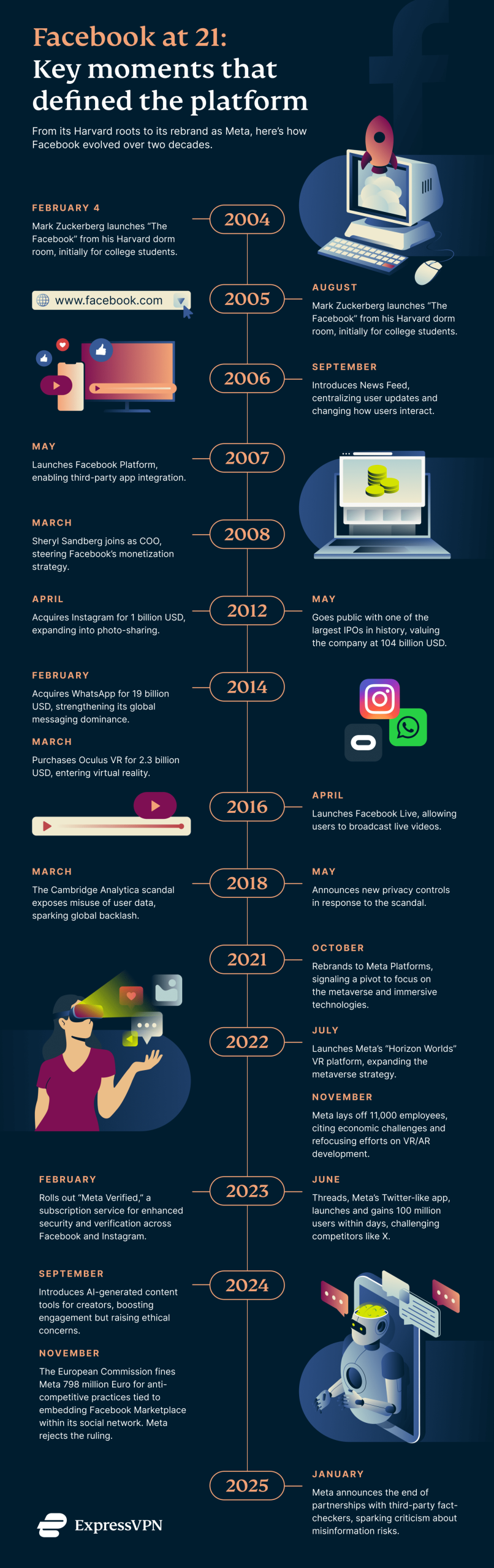 페이스북이 새로운 이정표를 세웠습니다: 21주년. 이는 미국에서 합법적인 음주 연령이며, 비유적으로는 성숙함을 의미합니다. 하지만 이 플랫폼이 상징적인 성인기에 접어든 지금, 페이스북의 영향력과 역할에 대한 의문은 그 어느 때보다 커지고 있습니다. 여전히 연결하고 공유하는 대표적인 플랫폼일까요, 아니면 쓰레드와 인스타그램 같은 더 트렌디한 플랫폼이 페이스북을 넘어섰을까요?