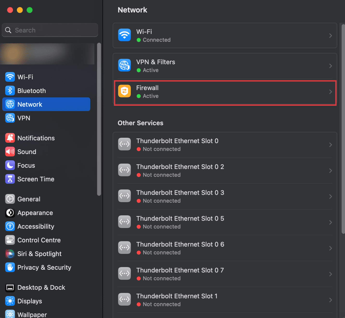 Je kunt naar Systeeminstellingen > Netwerk > Firewall gaan om te zien of die van jou aan staat. Als dat zo is, schakel hem dan uit: