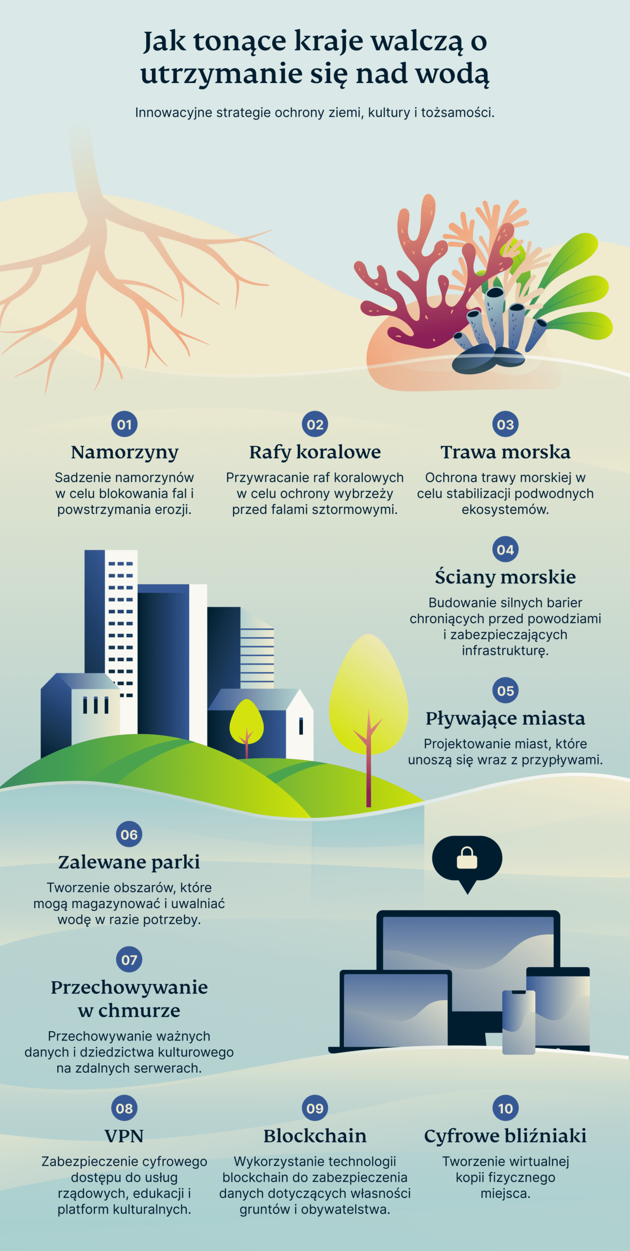 Jednak mimo utraty lądu i zagrożeń dla infrastruktury cyfrowej, te państwa nie przyglądają się biernie, jak ich historia zanika. Wręcz przeciwnie – walczą z niezwykłą determinacją, stosując zarówno fizyczne metody ochrony tego, co jeszcze pozostało, jak i strategie cyfrowe, które pozwolą im zachować tożsamość, niezależnie od tego, co przyniesie przyszłość.