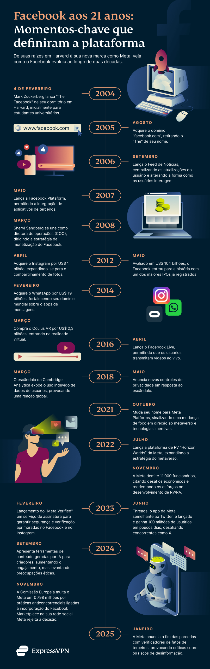 A trajetória de Mark Zuckerberg, desde o lançamento do Facebook em seu dormitório em Harvard até a construção de um império das redes sociais, já faz parte da história da tecnologia. O que começou como uma ferramenta para conectar estudantes universitários cresceu e se transformou em uma plataforma que redefiniu a forma como bilhões de pessoas interagem online. O Facebook ajudou a moldar uma era de conectividade, impulsionando notícias virais, comunidades globais e a expressão digital.
