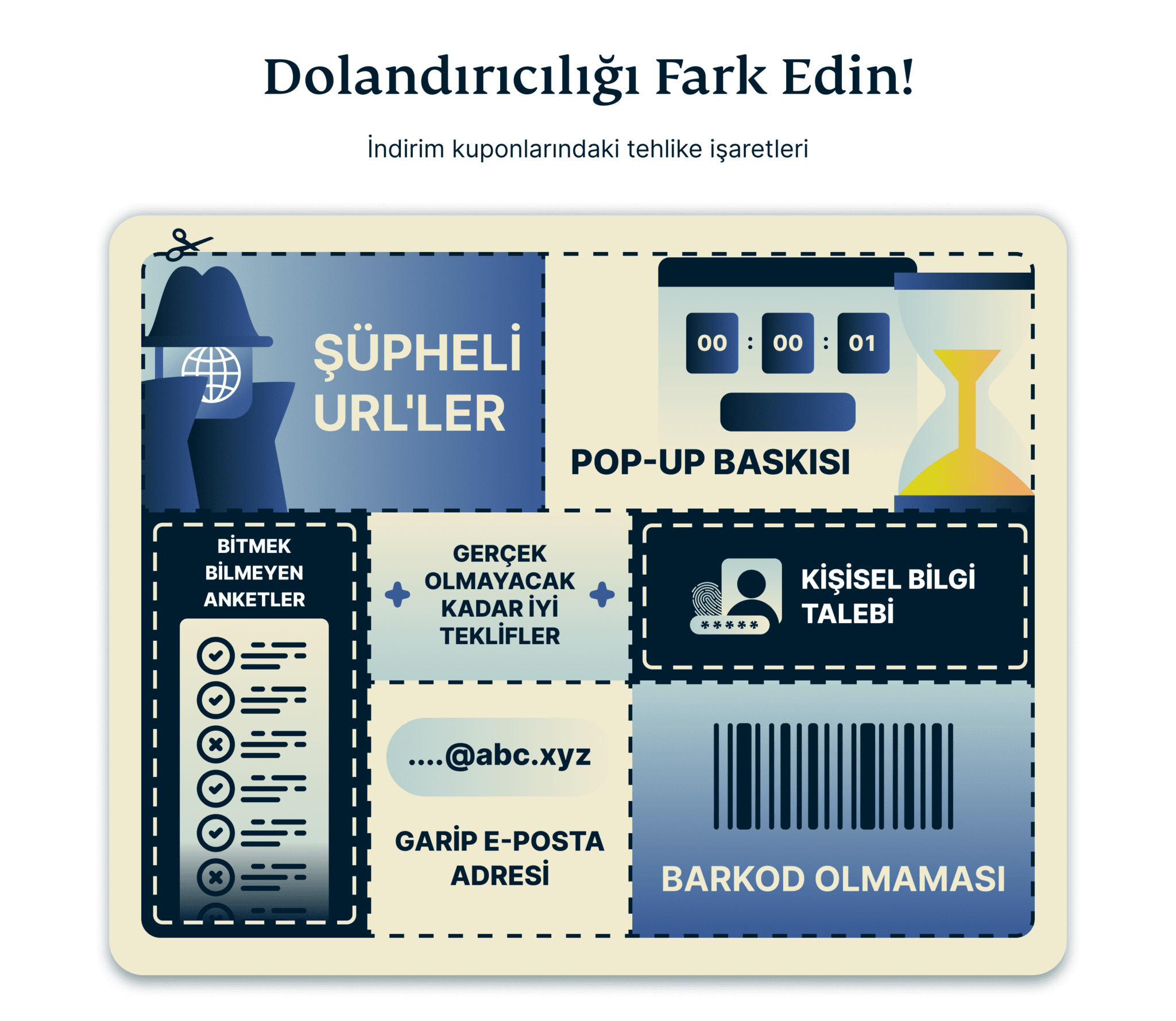 İndirim kuponları, tatil sezonunda adeta birer hediye gibi hissettirebilir. Ancak size para kazandırmayı vaat ederken, bazı tekliflerin gizli bir maliyeti vardır. Dolandırıcılar, sahte kuponlar kullanarak sizi kişisel bilgilerinizi vermeye ya da cihazınıza kötü amaçlı yazılım yüklemeye ikna etmek için tam mesai yapıyor. İşte, “gerçek olamayacak kadar iyi” bir teklife tıklamadan önce dikkat etmeniz gereken 11 dolandırıcılık: